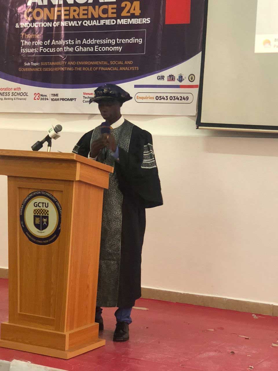 The VC made this notable remark in a speech delivered on his behalf by the Dean of the GCTU Business School, Prof. George Ampong, during the 2024 Annual Conference and Induction Ceremony of the newly-qualified members of the Charted Institute of Financial and Investment Analysts, Ghana (CIFIA, Ghana), held on Saturday, November 23, 2024, at the Florence Onny Auditorium. The theme for the occasion was “The Role of Analysts in Trending Environmental Issues: Ghana in Focus.”