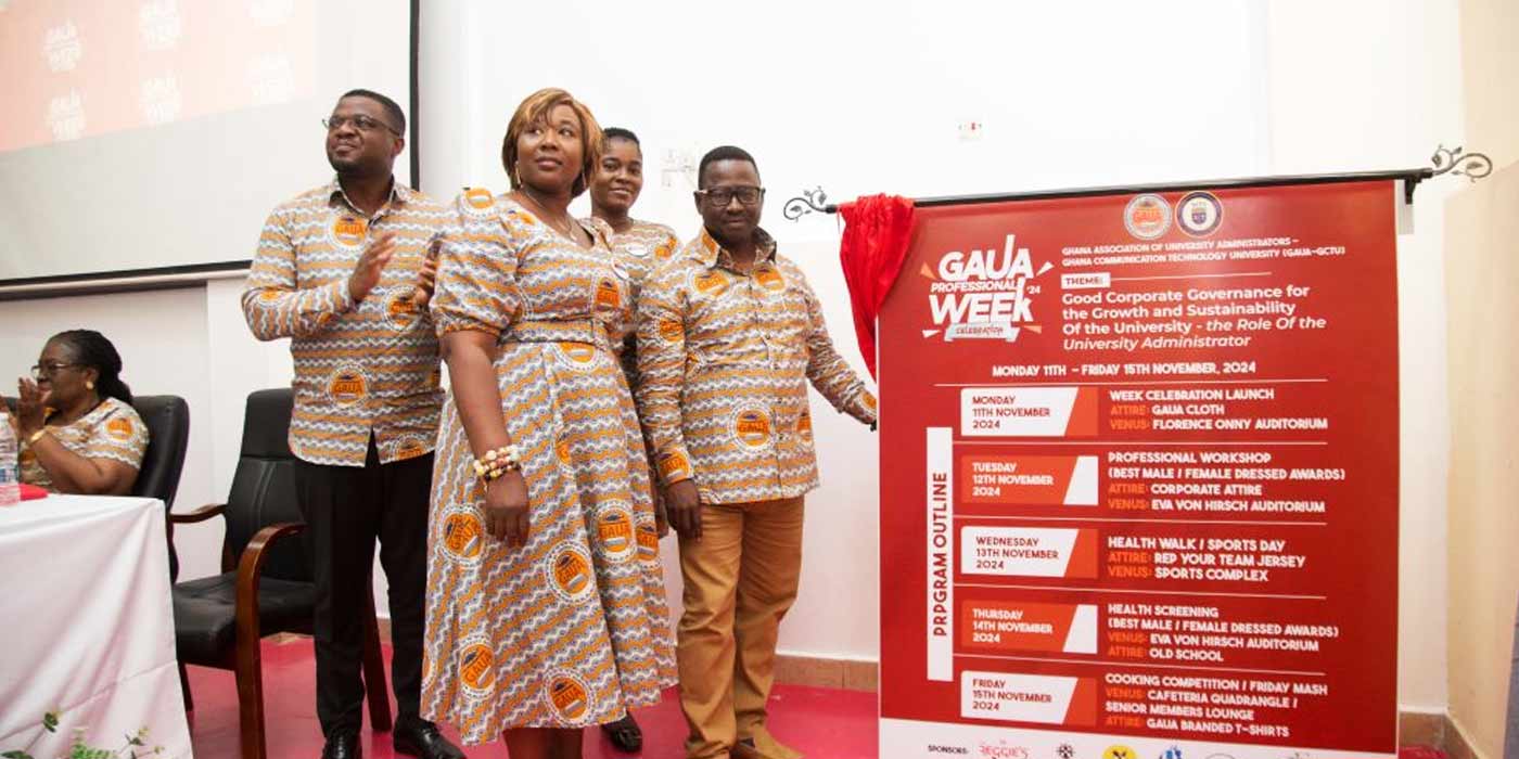 The Ghana Association of University Administrators (GAUA) – GCTU Chapter, officially launched its maiden Professional Week Celebration on Monday, November 11, 2024, at the Florence Onny Auditorium, with the theme: “Good Corporate Governance for the Growth and Sustainability of the University: The Role of the Administrator.”