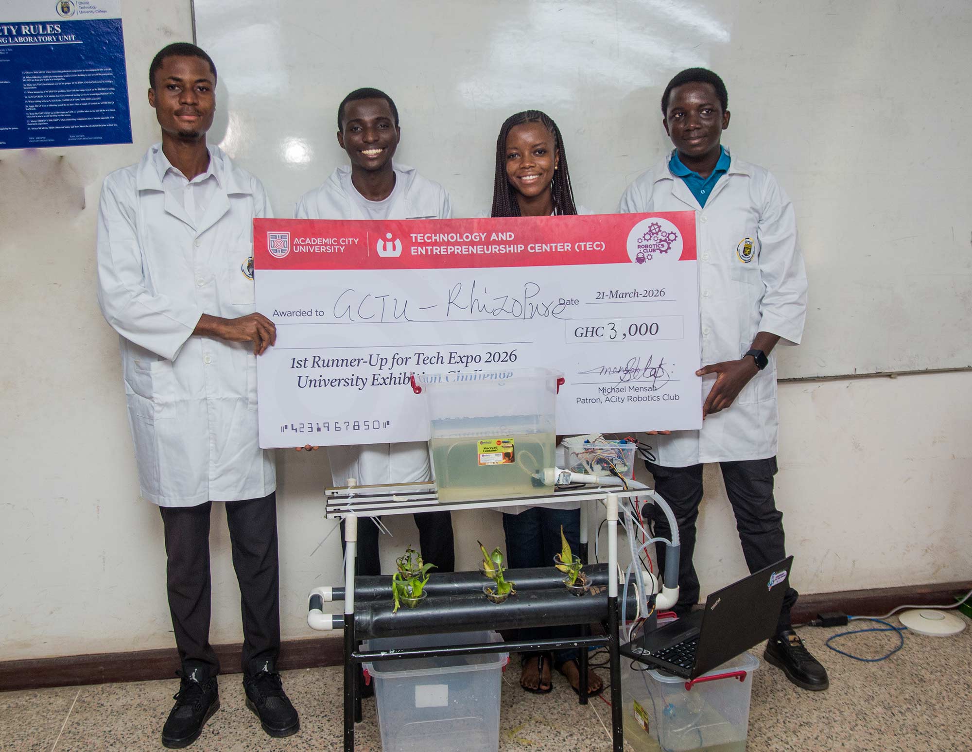 Engineering students of Ghana Communication Technology University (GCTU) have emerged winners and 1st runners-up at the Academic City University Tech Expo 2026, held on Saturday, March 21, 2026, at the Academic City University College campus.