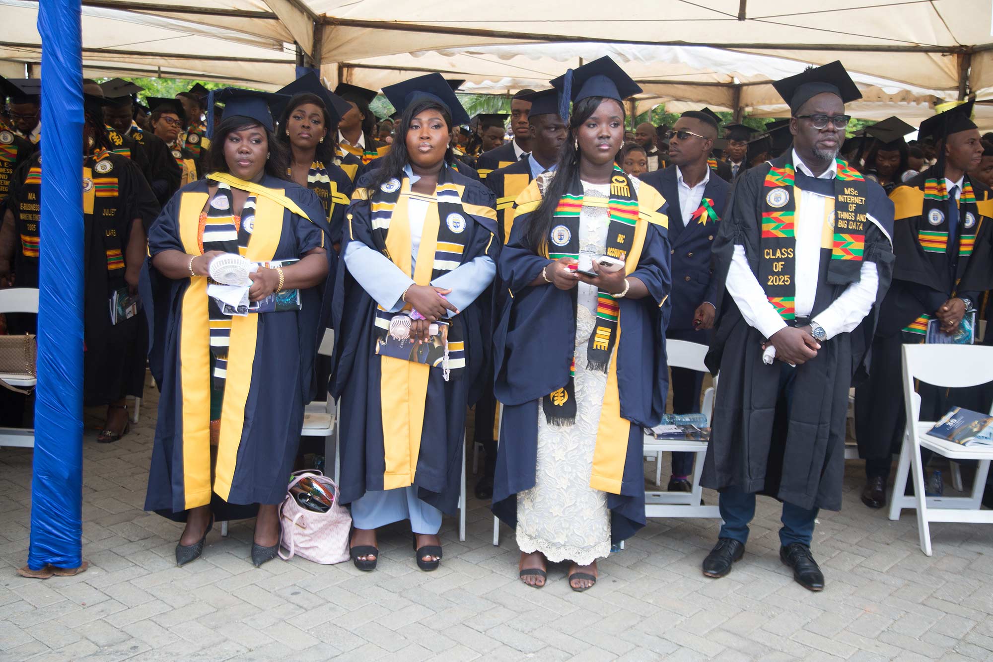 The Valedictorian, Mr. David Ankomah, who earned a B.Sc. in Electrical and Electronics Engineering with a final CGPA of 3.83, reflected on the journey that had brought him and his mates to this milestone – hard work, good friendships, support of family, faculty and staff.  He thanked God, the University administration, Staff and his mother for their guidance and support. Mr. Ankomah urged graduands to: Measure success by the impact they make and the integrity they keep; seize opportunities wisely, avoid unnecessary risks; view graduation as a new beginning, dream big while staying grounded and support their alma mater. He ended his speech with Winston Churchill’s encouraging quotation – “Success is not final, failure is not fatal: it is the courage to continue that counts.”