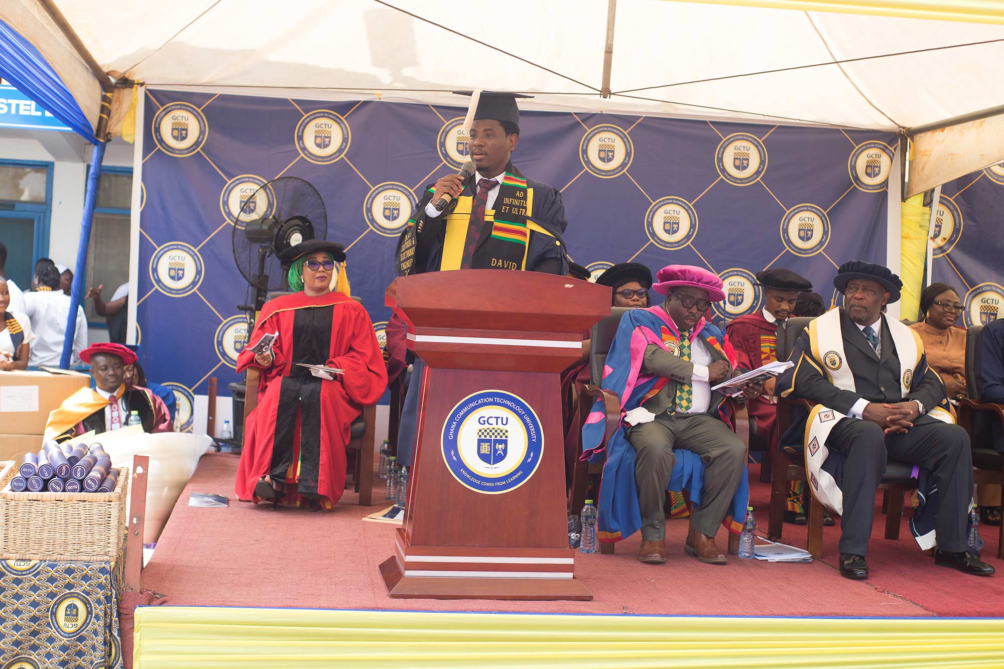 The Valedictorian, Mr. David Ankomah, delivering his speech.