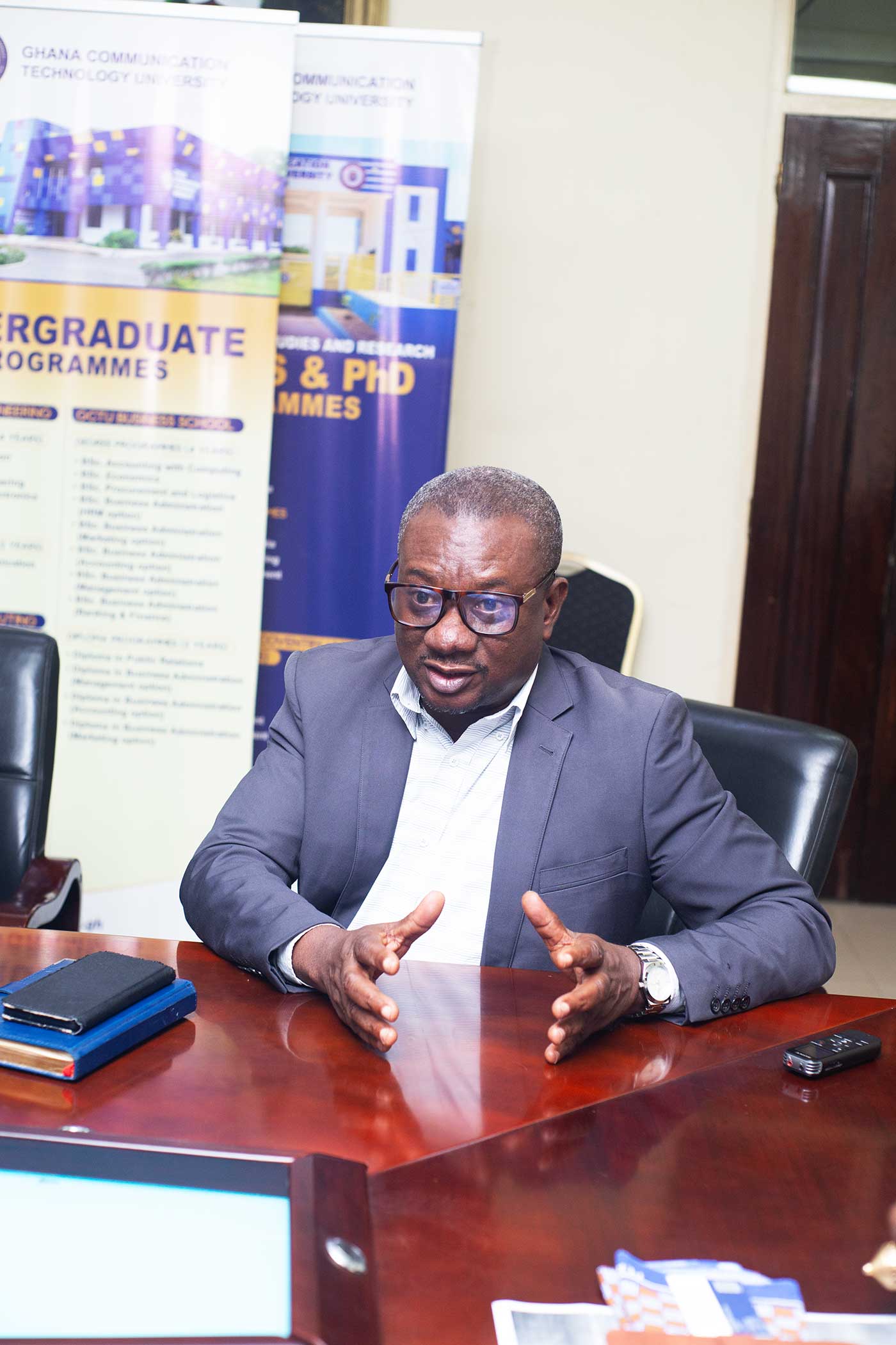Giving his remarks, the Director of Tertiary Education at MoE, Dr. Emmanuel Newman, was impressed with the VC’s comprehensive presentation, relevant questions asked and answers received. He expressed his gratitude to the University for the warm reception and for hosting them, stressing his excitement about the growth of GCTU. “We look to GCTU to lead Ghana in the Artificial Intelligence revolution based on your mandate. Your Learning Centres are a great initiative; they will expand tertiary education to several places and enable workers to enhance their capacities,” Dr. Newman remarked. He commended GCTU’s collaboration with foreign institutions, noting that it gives the University an international standing.