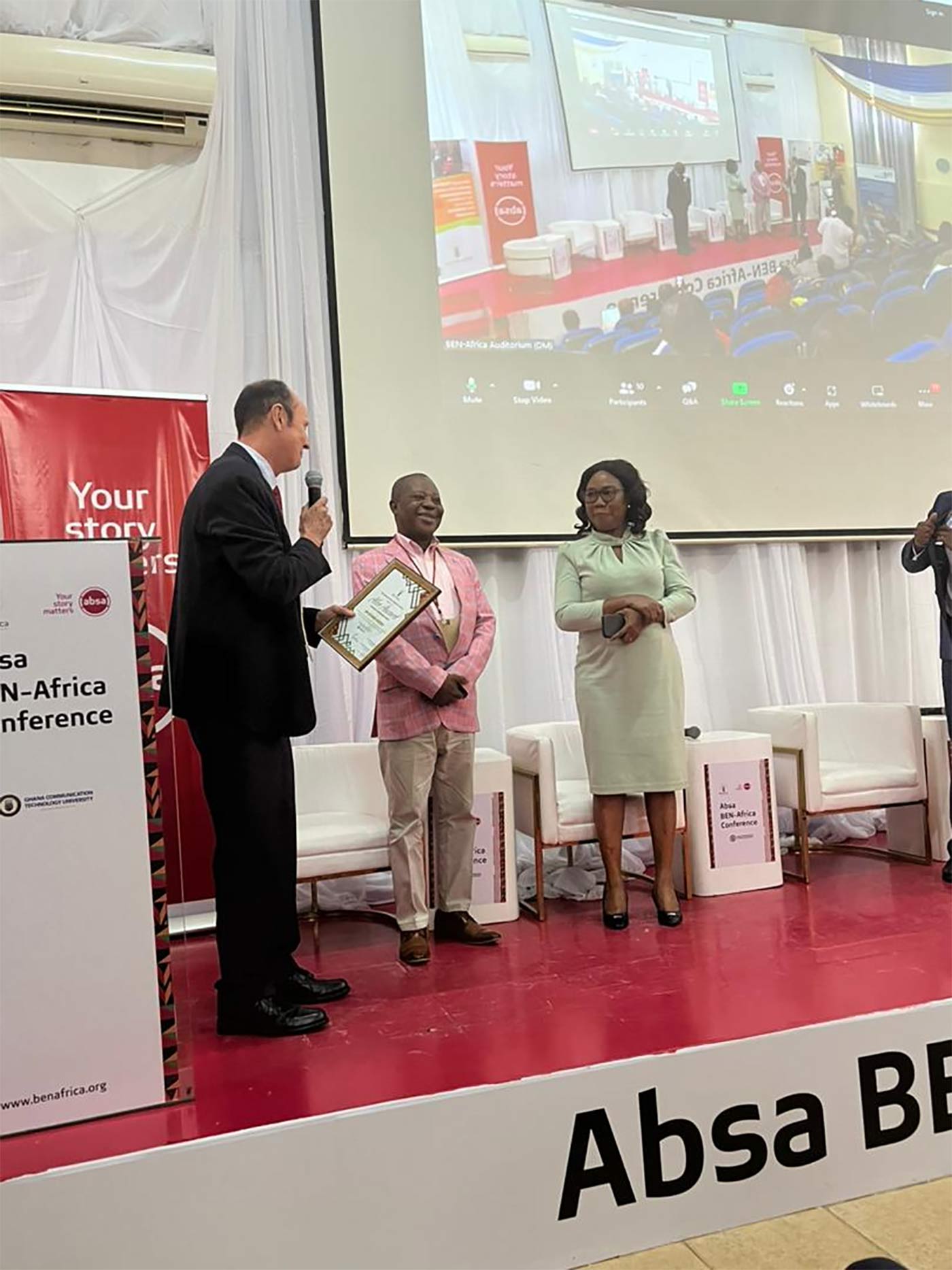 The GCTU team was presented the award by the President of BEN-Africa, Mr. Bryan Robinson (left)