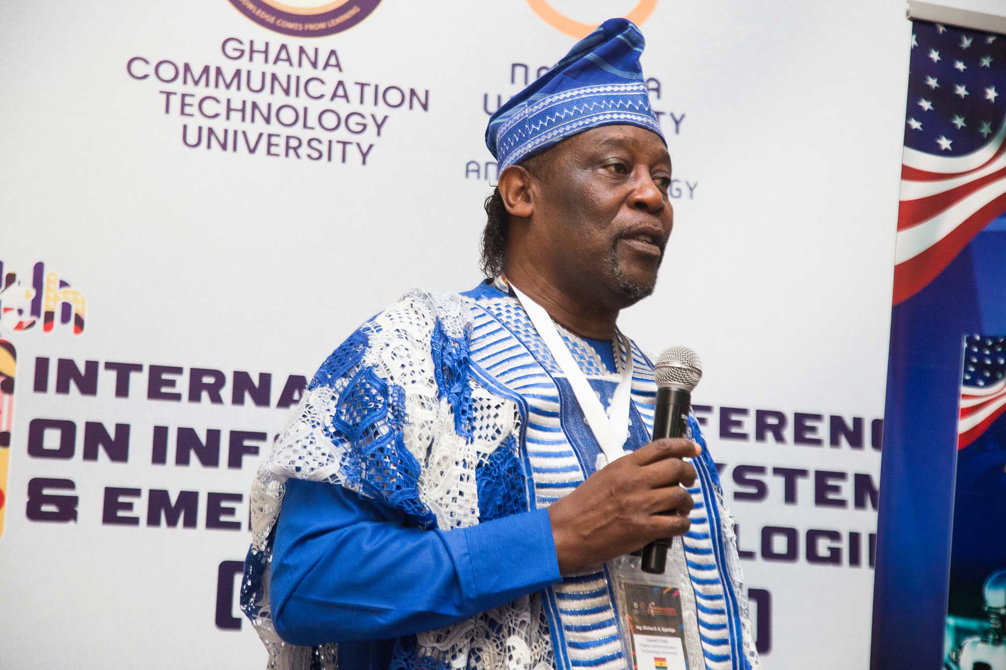Earlier, in his opening remarks, the Chairman of the Conference, Dr. Emmanuel Freeman, warmly welcomed 150 in-person and online participants to the event. He recounted how the event originated from a phone call conversation with the Co-Chair, Prof. Jude Osakwe (NUST). Dr. Freeman noted that all presentations are tailored for an African-led revolution in innovation, AI, blockchain, cybersecurity and other cutting-edge applications. According to him, the Conference, which began in 2022 at NUST has since been hosted twice, with previous locations in South Africa and now Ghana. He said that NUST will continue to collaborate with GCTU.