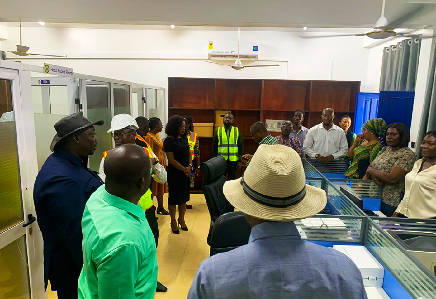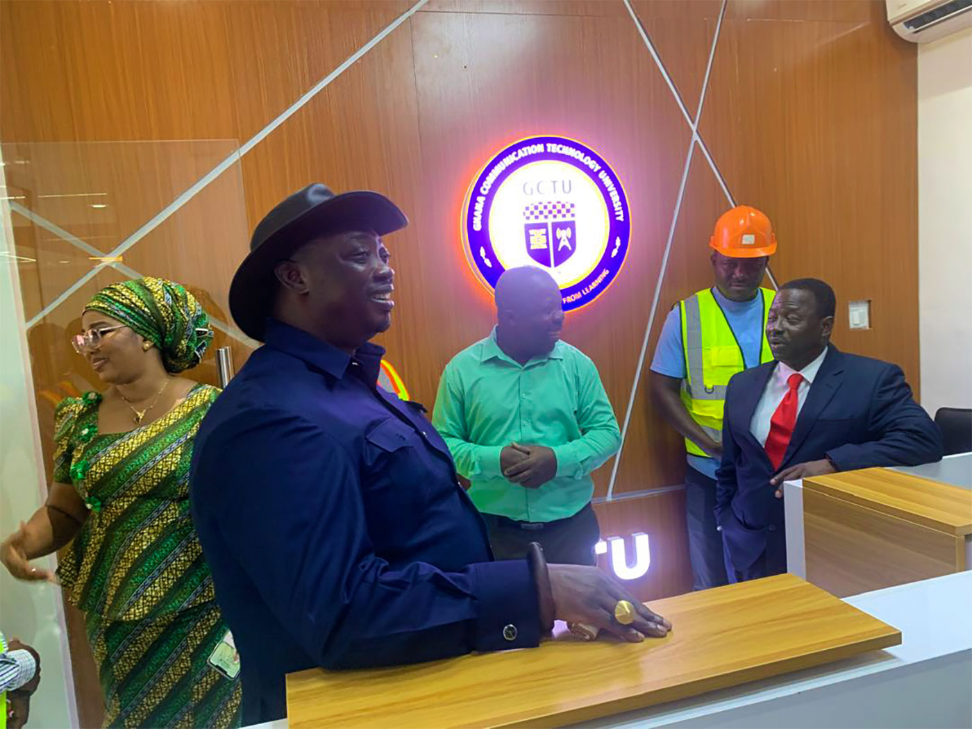 The scope of work under this segment included installing of glass panels, ceiling repairs, wiring, lighting fittings, air-conditioners, LED-lighted GCTU logo, tiling, installation of curtains and desks.